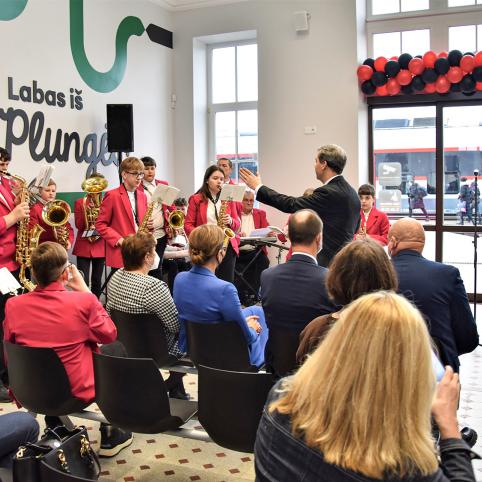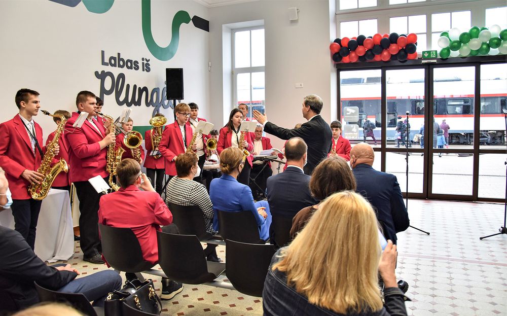 Penk­ta­dienį prie­špiet, skam­bant tran­kiai Plungės My­ko­lo Ogins­kio me­no mo­kyk­los pu­čiamųjų or­kest­ro mu­zi­kai, iš­kil­min­gai per­kirp­ta sim­bo­linė juos­telė, žy­min­ti bu­vu­sios Plungės ge­le­žin­ke­lio sto­ties ka­pi­ta­li­nio re­mon­to pa­baigą. Prieš 90-metį pa­sta­ty­tas sto­ties pa­sta­tas ne tik at­si­nau­ji­no, ta­po mo­der­nes­nis ir jau­kes­nis, bet ir pri­glaudė po sa­vo sto­gu Plungės au­to­busų par­ko ad­mi­nist­ra­ciją, tad nuo šiol trau­ki­nių sto­ties du­rys at­vi­ros ir lau­kian­tie­siems tarp­mies­ti­nių au­to­busų.