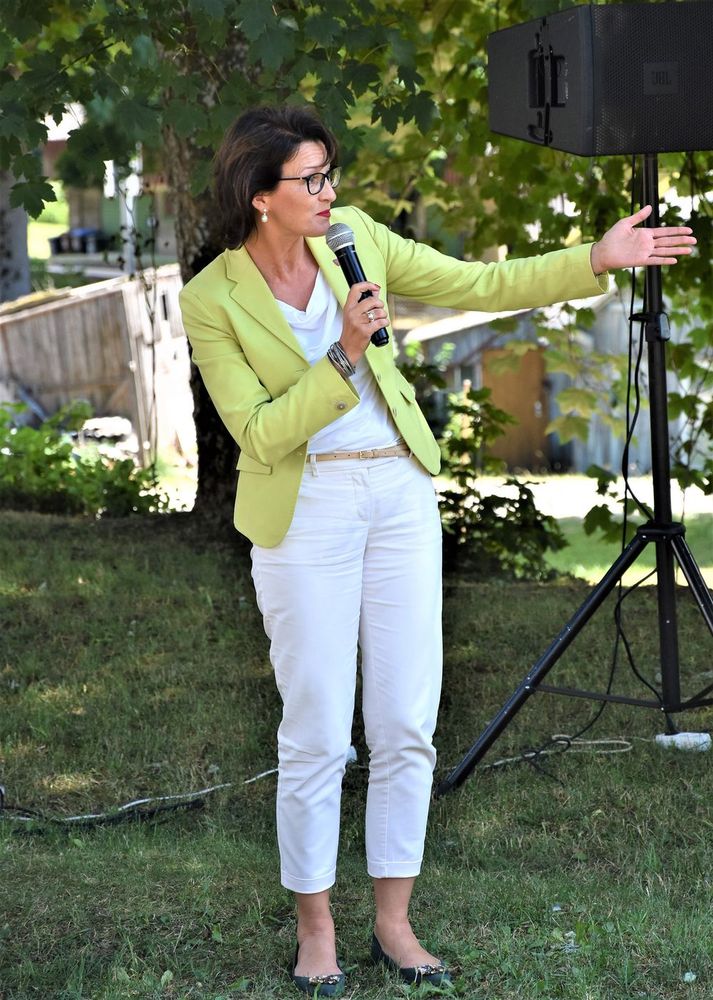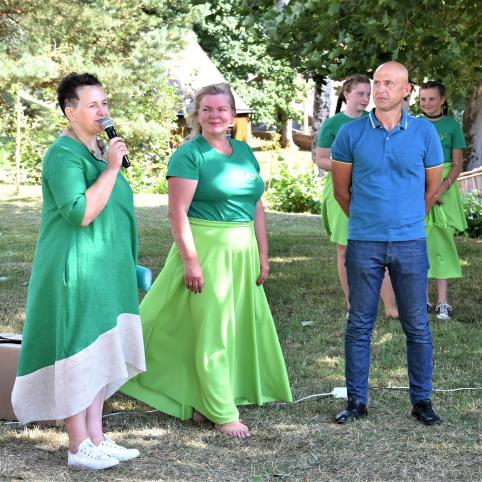 Ž. Purauskis pasidžiaugė ir į centro atidarymą atvykusiais svečiais, ypač D. Nausėdiene ir D. Henke: „Aš nemoku apsakyti, kokia garbė Alsėdžių žemėje turėti tokius svečius, ir dar vienu metu.“