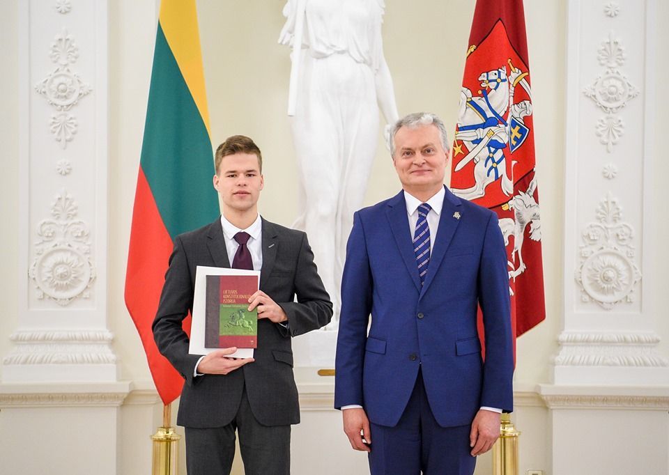 Iš­kil­min­go­je ce­re­mo­ni­jo­je iš vi­so pa­gerb­ti 29 eg­za­mi­no nu­ga­lė­to­jai, tarp jų – ir 13 įvai­raus am­žiaus moks­lei­vių. Plun­gės „Sau­lės“ gim­na­zi­jos abi­tu­rien­tas A. Ged­vi­las, kaip ir ki­ti da­ly­viai, var­žė­si sa­vo am­žiaus gru­pė­je. Plun­giš­kis tei­sin­gai at­sa­kė į vi­sus 19 eg­za­mi­no klau­si­mų. Jam, kaip ir ki­tiems lai­mė­to­jams, įteik­ta Pre­zi­den­to pa­si­ra­šy­ta pa­dė­ka bei kny­ga.