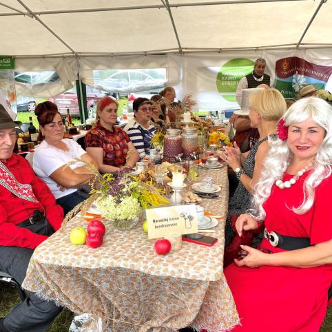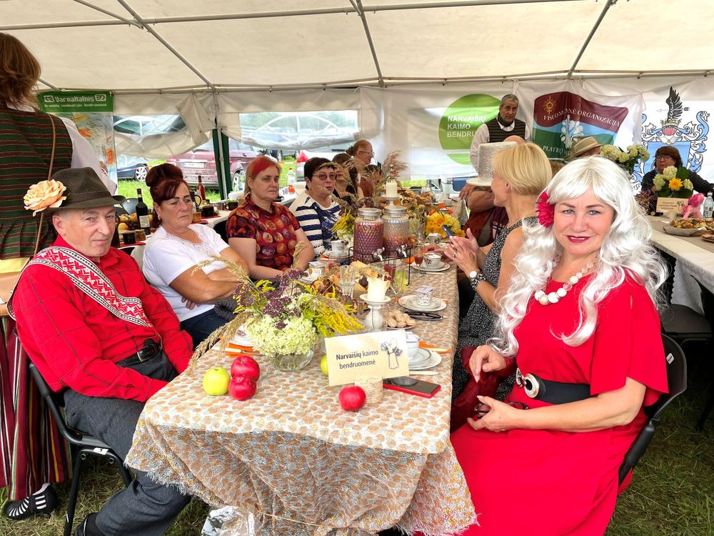 Penkiolikos aktyviausių Plungės rajono bendruomenių nariai, susirinkę į Prūsalius, nuo ankstyvo ryto kibo į stalų puošimo bei serviravimo darbus. Nuo gausių suneštinių vaišių net akys raibo: ant stalų plaukė gardžiausi tortai ir pyragai, kaimiški lašiniai, sodo bei daržo gėrybės ir net išradingai papuošta kiaulės galva.