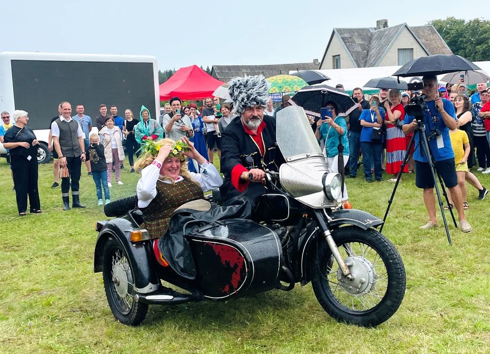 Visus atvykstančius, kaip ir pridera vestuvėse, prie vartų pasitiko muzikantai – Žlibinų kultūros centro kapela „Riviena“ su vadovu Alfredu Lučinsku priešaky.