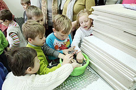 INDĖLIS: Šiaulių logopedinio darželio vaikai atnešė savo pirmąsias gyvenime santaupas ir suklijavo ant sienos.