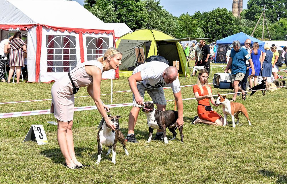 Artė­jant prie sta­dio­no, at­ro­do, turė­jo pa­si­girs­ti šunų lo­ji­mas, bet iš vi­sos Lie­tu­vos ir ki­tur čia su­vež­ti šu­nys – ne ko­kie kiem­sar­giai. Dau­ge­lis jų pa­ro­do­je da­ly­vau­ja ne pirmą kartą, tad tiek jie, tiek juos at­vežę šei­mi­nin­kai su­pran­ta, kad rei­kia su­spindė­ti ne tik iš­vaiz­da, bet ir ne­ro­dy­ti ne­tin­ka­mo cha­rak­te­rio. Jei­gu ku­ris praei­da­mas pro šalį ir irz­telė­da­vo ant kai­my­no, šei­mi­nin­ko bu­vo tuoj pat su­draus­min­tas. Juk ne dantų ro­dy­ti čia at­va­žiavę, o var­žy­tis dėl ge­riau­siųjų ti­tulų.