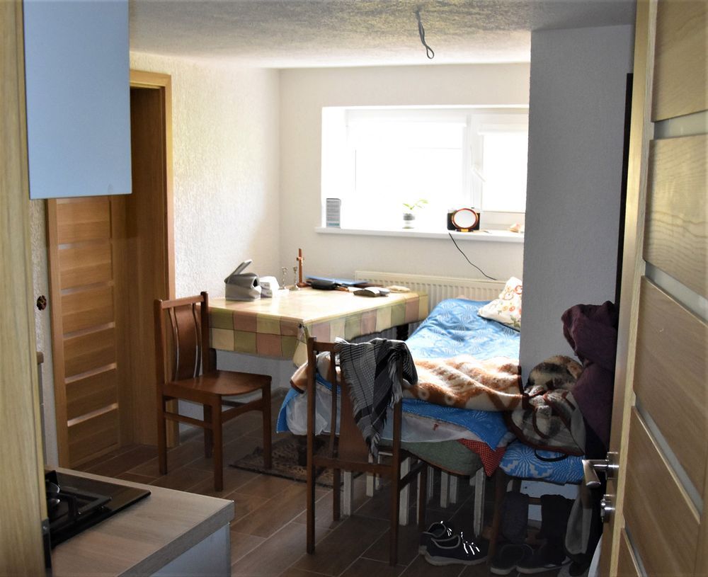 Kalvariškė miega toje pačioje erdvėje, kur ir virtuvėlė. Ir prausiasi, galima sakyti, ten pat, nes nebaigtas įrengti dušas dar be durų ir šviesos. Lygiai tokia pati situacija ir su tualetu. Bronislava rodė ir sugedusį šaldytuvą bei tiesiog ant spintelės išrikiuotus maisto produktus. Dėl rūsyje esančios drėgmės maisto produktai kaip mat pradeda gesti,