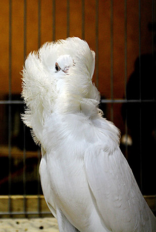 BALANDIS: Perukinis balandis (kapucinas). Išdidus dėl didžiulės puošnios apykaklės.
