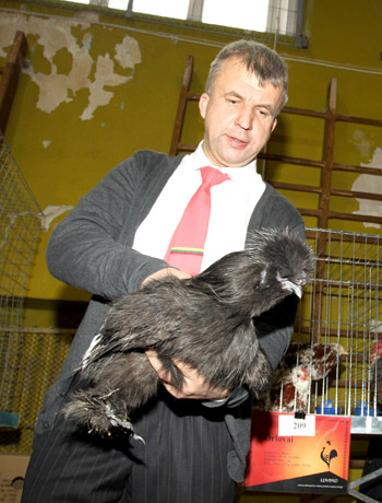„Višta šiaip jau nėra vien tik višta dėl naudos. Ji – paukštis, kuris ir gražus, ir spalvingas, ir įdomus“, – sakė spurdančią šilkaplunksnę gražuolę rankose laikantis A. Kundrotas.
