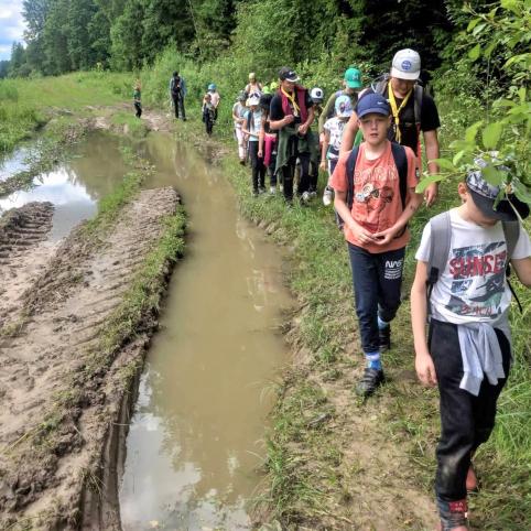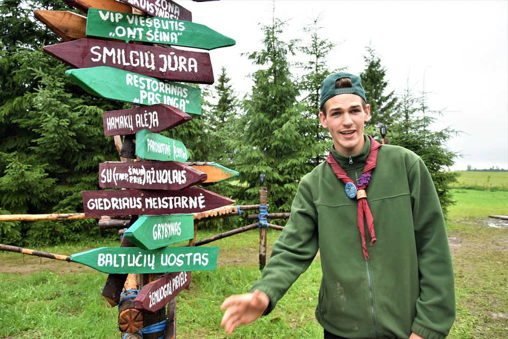 „Vis­kas pri­klau­so nuo nu­si­tei­ki­mo, – seną tiesą pa­tvir­ti­no sto­vyk­los va­do­vas Do­vy­das Vait­kus. – Orai šie­met tik­rai ne mūsų pusė­je, bet pa­si­taikė ir gra­žių dienų. Vieną dieną net mau­dy­nes tven­ki­ny turė­jom. Pir­ma­dienį – žy­gio dieną – vy­res­nie­ji ke­lia­vo iki pi­lia­kal­nio, vi­so gal 20 ki­lo­metrų te­ko įveik­ti, ma­žes­nie­ji ar­čiau – iki Die­vo sta­lo ak­mens. Pas­ta­rie­ji lai­ku spėjo grįžti, o di­des­nie­ji pa­kliu­vo į liūtį, par­ėjo per­mirkę iki pa­sku­ti­nio siū­lo. Bet tai ir­gi nuo­ty­kis. Be jų ne­būna skau­tiškų sto­vyklų.“