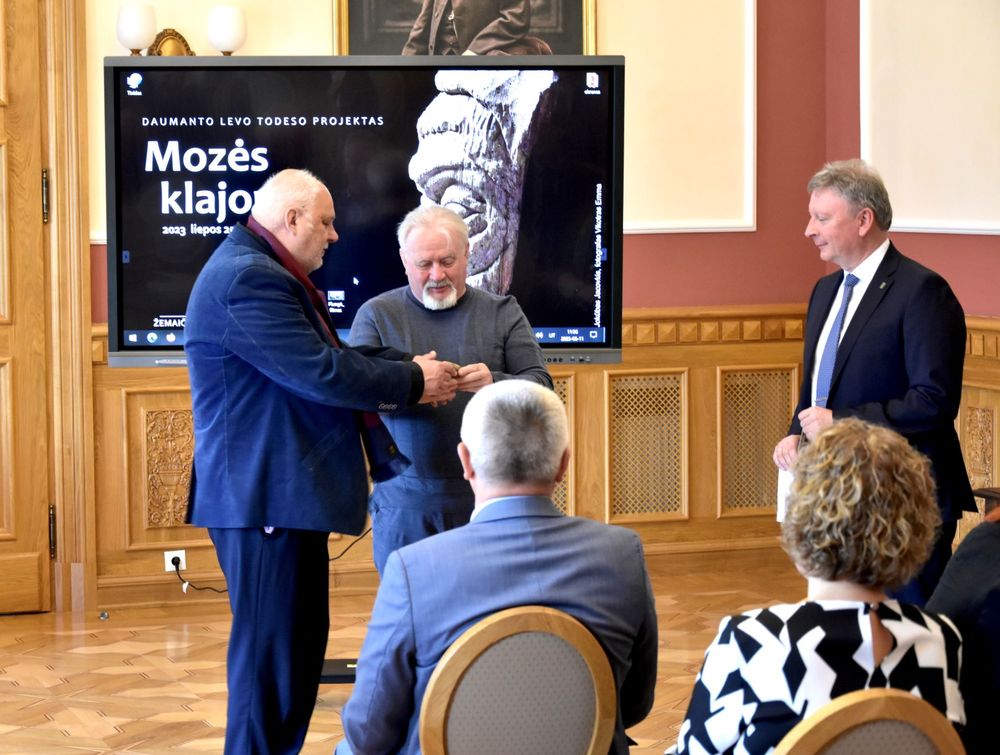 Po išsakytų gražių minčių ir pasidalintų prisiminimų, D. L. Todesas visus pakvietė apžiūrėti Žemaičių dailės muziejuje eksponuojamą jo paties sugalvotą ir kuruojamą parodą „Mozės klajonės“.