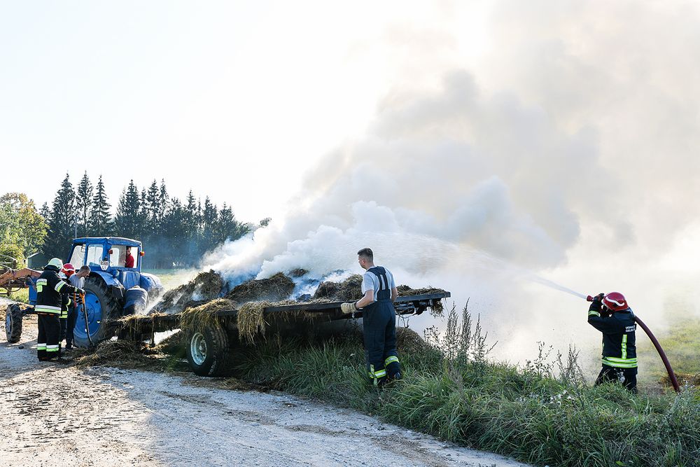 Bijodami, jog netrukus liepsnų liežuviai apims ir patį traktorių, gaisrininkai degantį šieną iškrovė pakelėje ir perpylė jį vandeniu. Tad nei priekaba, nei traktorius MTZ 52 nespėjo apdegti.