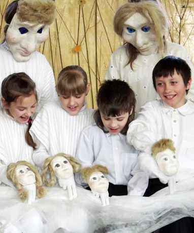 MOKSLAI: „Žagarės Vyšniuko“ vaikai išmoko vaidinti su kaukėmis ir ant plaštakos maunamomis lėlėmis.