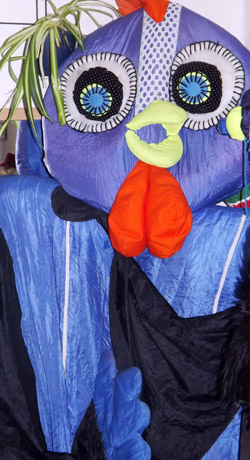 Aukštai palubėje sukabintos tarsi rūbas ant kūno užsivelkamos lėlės – didžiuliai vilko, zuikio ir kitų gyvūnų atvaizdai. O štai dar vienas vilkas su „vatiniais“ dantimis, valdomas pagaliu, slepiasi po pūkuotų ir ryškiaspalvių paukščių, primenančių flamingus, plunksnomis.