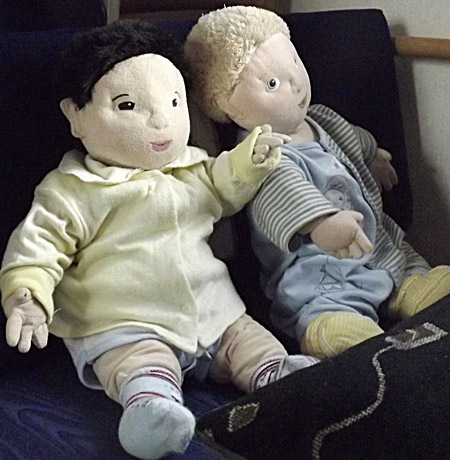 LĖLYTĖS: Prisėdusios dar dvi rankų darbo lėlytės – berniukas ir mergaitė.