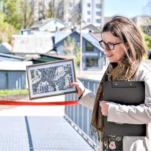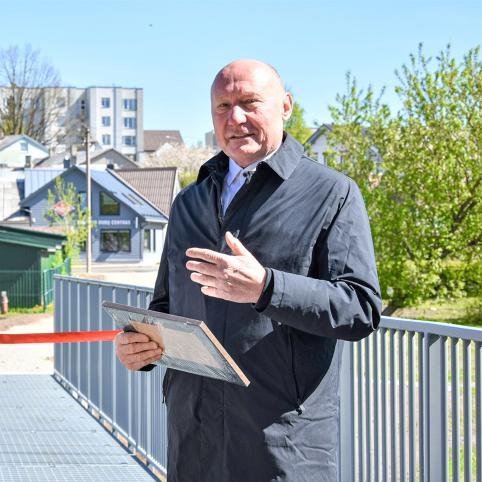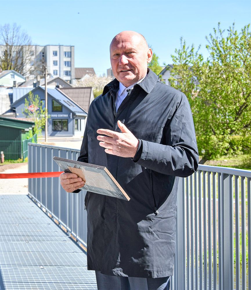 Ki­ta M. Cha­ri­to­no­vos pa­dėka ir minė­to­sios dai­li­ninkės pa­veiks­las bu­vo skir­ti Sa­vi­val­dybės ad­mi­nist­ra­ci­jos di­rek­to­riui Min­dau­gui Kau­nui. Jis pa­ts pri­si­minė, kad tik pra­dėjęs va­do­vau­ti ad­mi­nist­ra­ci­jai per­žiūrė­jo ši­lu­mos ūkio spe­cialųjį planą, pa­tvir­tintą 2012 me­tais, ir nu­ste­bo, kad per tiek metų dėl jun­gia­mo­sios tra­sos nė kiek ne­pa­sistūmė­ta į prie­kį. „Dėl tu­ne­lio su­si­vie­ni­jo vi­sa tiek vie­tos, tiek res­pub­li­kinė vald­žia, po­li­ti­kai, ir jis bu­vo įreng­tas. Šiai tra­sai taip pat bu­vo rei­ka­lin­gas po­li­ti­nis pa­lai­ky­mas“, – pa­stebė­jo di­rek­to­rius.
