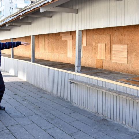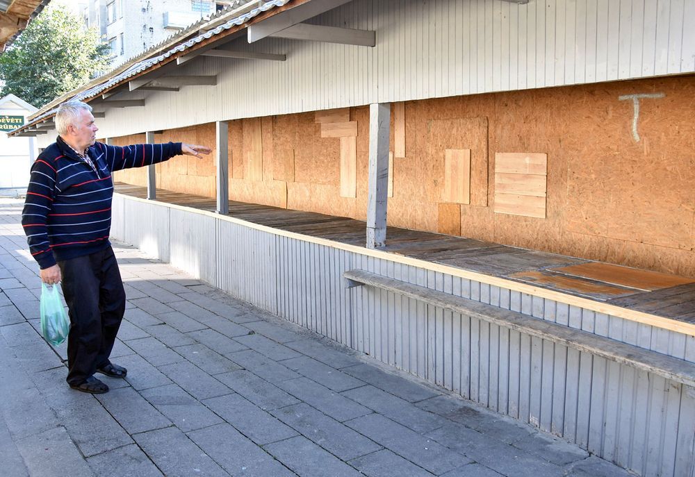 „Štai, žiūrėkit, prispjaudyta, o prieš pusvalandį valiau“, – į „Gojaus“ turgelį atvykusiems žurnalistams ranka rodo Henrikas.
