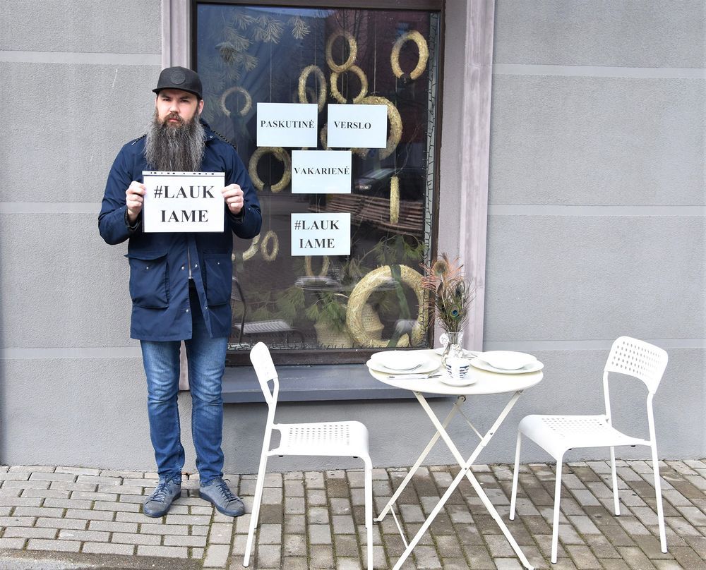 Prie lauke „Paskutinei verslo vakarienei“ padengto staliuko „Žemaičio“ kalbintas „Mr. NOM cafe bar“ savininkas Martynas Vyšniauskas buvo atviras: „Žinokit, skauda... Laikomės ant paskutinio siūlo, bet kiek gali iš savo kišenės imti.“