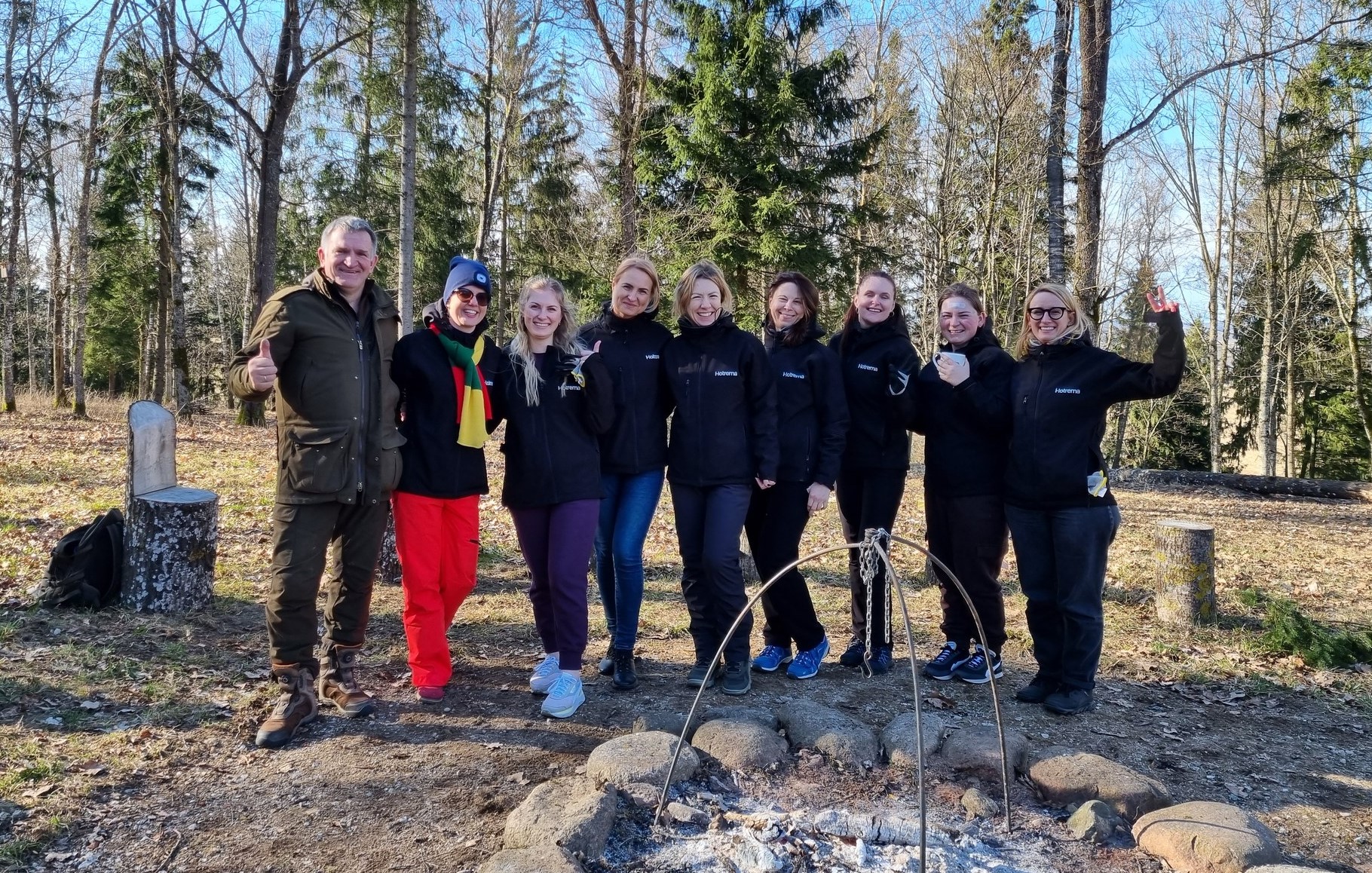 S. Vaičekauskas su savanorėmis – įmonės „Hotrema“ darbuotojomis