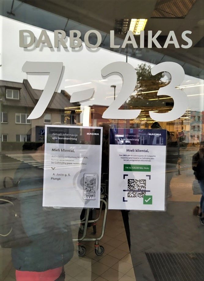 Be galimybių paso negalima patekti ne tik į J.Tumo­Vaižganto gatvėje esančią „Maxima“, bet ir į jos patalpose įsikūrusias kitas parduotuves