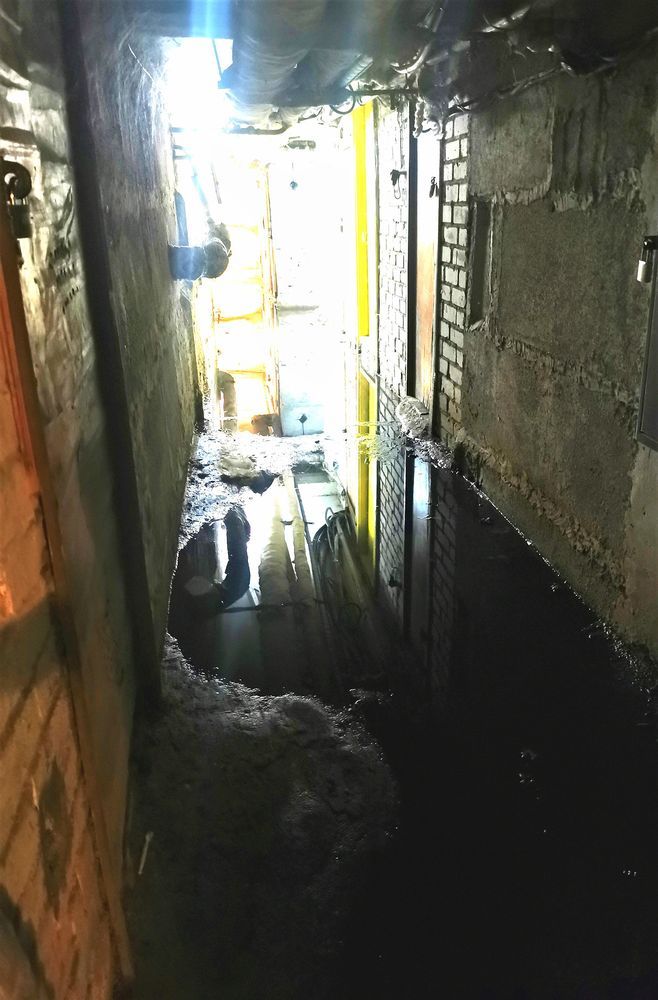 Nuvykę į Plungės dangoraižiu pašaipiai vadinamą daugiabutį vienos iš gyventojų paprašėme įleisti į rūsio patalpas, kurios nuo pašalinių – rakinamos. Lydėdama mus į rūsį jauna moteris pasakojo, kad jis užlietas jau maždaug dvi savaites, bet niekam tai – nė motais. Prisiminė, jog kažkurią dieną buvo atvažiavę bendrovės „Plungės vandenys“ darbininkai, bet apžiūrėję rūsį pareiškė, kad avarija – ne iš jų pusės. Tuo pagalba ir baigėsi.