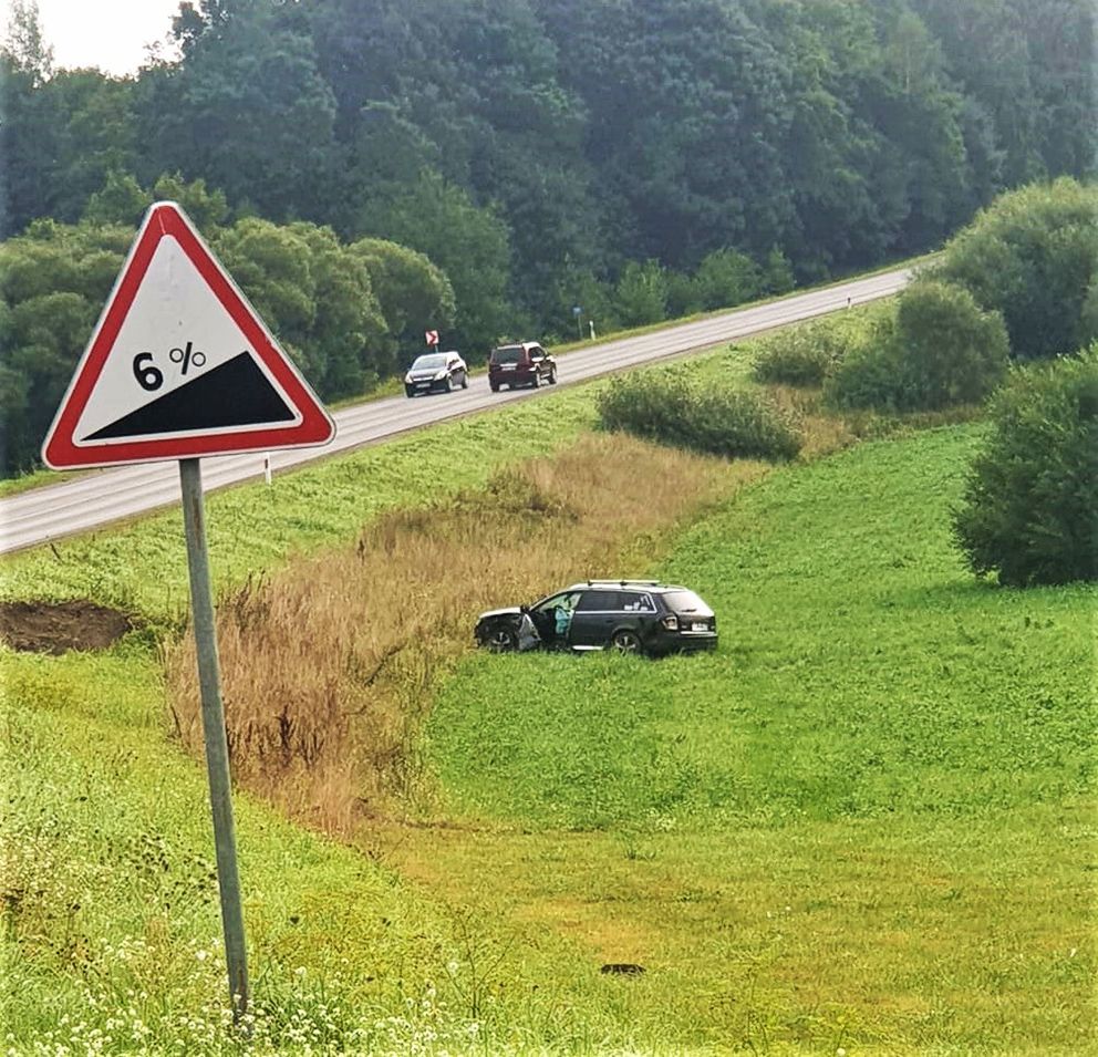Ten pat pasirodė ir „Audi“ nuotrauka, iš kurios matyti, jog automobilis aplamdytas. Kad jis – po nemenkų smūgių, liudijo ir išsiskleidusi oro pagalvė. Kada „Audi“ posūkyje nulėkė nuo kelio, neaišku, nes, išskyrus mašiną, įvykio vietoje daugiau nieko nebuvo. Tad feisbuko komentatoriams tik liko spėlioti, ar per tokią avariją išvengta sužeistųjų.