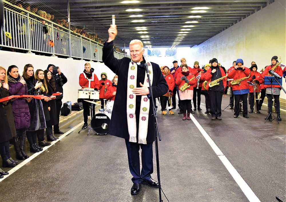 Tu­ne­lio ati­da­ry­mo juos­te­lę kar­tu su ki­tais per­kir­po ir LAKD di­rek­to­rius Vi­ta­li­jus And­re­je­vas. Jis pa­brė­žė, kad šis sta­ti­nys – uni­ka­lus, ka­dan­gi jo per­dan­ga yra iš­ti­si­nė. Tad Lie­tu­vos ge­le­žin­ke­liai ga­lės kaip no­ri tvar­ky­tis su sa­vo bė­giais, re­konst­ruo­ti juos ar per­mon­tuo­ti, ne­su­da­ry­da­mi ne­pa­to­gu­mų plun­giš­kiams, mat va­žiuo­jan­tie­ji ar pės­tie­ji iš vie­nos mies­to da­lies be var­go ga­lės nu­kak­ti į ki­tą nau­juo­ju tu­ne­liu.