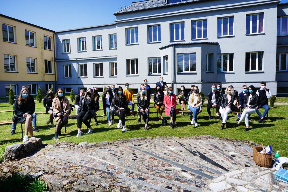Vienos gražiausių švenčių tradicijas karantinas pakoregavo ir „Saulės“ gimnazijoje. 176 šios įstaigos dvyliktokai paskutinį skambutį paminėjo atskiromis grupelėmis. Dvi klasės nutarė mokslo užbaigimo šventę paminėti virtualiai, likusios keturios atskiru laiku rinkosi gimnazijos kieme. Čia jas pasveikino klasių auklėtojos bei įstaigos vadovas Algimantas Budrys.