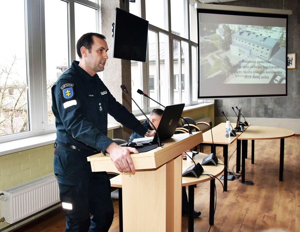 Ko­mi­sa­ria­to vir­ši­nin­kas G. Po­ce­vi­čius pa­si­džiaugė jo va­do­vau­jamų pa­reigūnų darbų, ne­nu­tylė­jo ir pro­blemų, su ku­rio­mis po­li­ci­jai ten­ka su­si­dur­ti