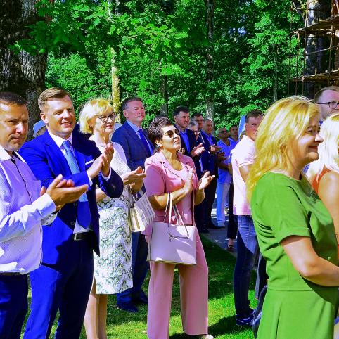 Prie sveikinimų prisidėjo ir Plungės rajono savivaldybės meras Audrius Klišonis, kuris dėkojo už paskatinimą atgaivinti tokias parodas, kokias anuomet rengdavo kunigaikščiai Oginskiai. „Kol kas tai – pirmas ir nedrąsus bandymas, grįžtant prie senųjų ištakų, vėl suburti Žemaitijos įmones, parodyti mūsų šalies gyventojams, kuo jos gyvena, ką gamina, ką sugeba padaryti. O sugebame labai daug. Esam išmanūs“, – kalbėjo meras, paraginęs labiau atsigręžti į aplink sėkmingai veikiančias įmones ir organizacijas, o ne dairytis į užsienio šalis, sekant jų pavyzdžiu.
