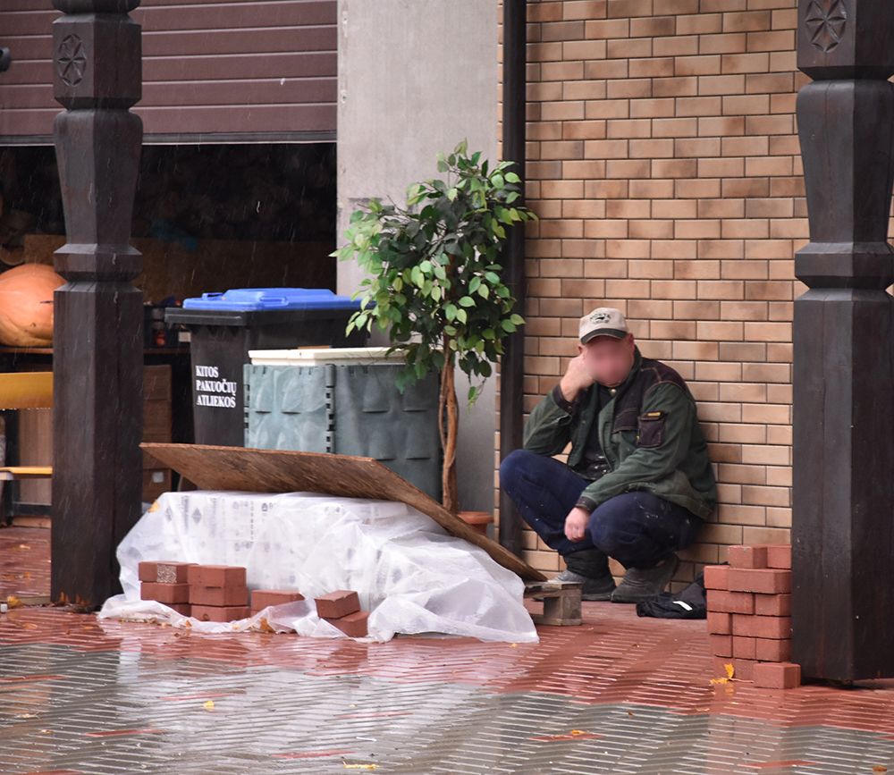 Tiesa, vyras sakė, kad liepą kelias dienas išties šienavęs pakeles, kaip ir priklauso dirbančiajam pagal Užimtumo didinimo programą. Įdarbintas seniūnijoje buvo liepos 26-ąją. „Po to seniūnas pasiūlė padirbėt čia, pas jį“, – pridūrė. Ar klijuoti plyteles lengviau, nei pjauti žolę? „Lengviau“, – tarstelėjo, bet į tolimesnius aiškinimus, kodėl priėmė seniūno siūlymą, nesileido.