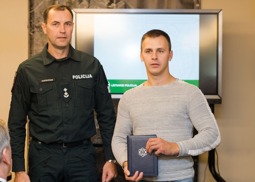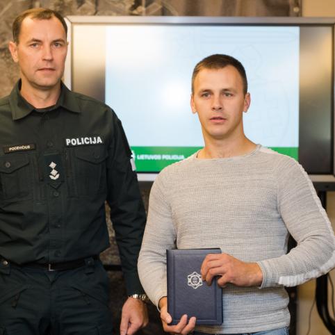 Prieš tai ko­lek­ty­vas An­ge­lų sar­gų die­ną šven­tė kar­tu su ko­le­go­mis iš vi­sų Klai­pė­dos ap­skri­ties vy­riau­sio­jo po­li­ci­jos ko­mi­sa­ria­to struk­tū­ri­nių pa­da­li­nių. Iš­kil­mės vy­ko praė­ju­sį penk­ta­die­nį Skuo­de. Iš jų vie­nas mū­siš­kis pa­rei­gū­nas grį­žo su ypa­tin­gu įver­ti­ni­mu – Rea­ga­vi­mo sky­riaus vy­riau­sia­sis pa­tru­lis Egi­di­jus Ta­ra­se­vi­čius pel­nė „Me­tų pa­rei­gū­no“ (pir­mi­nė­je gran­dy­je) ap­do­va­no­ji­mą.