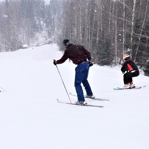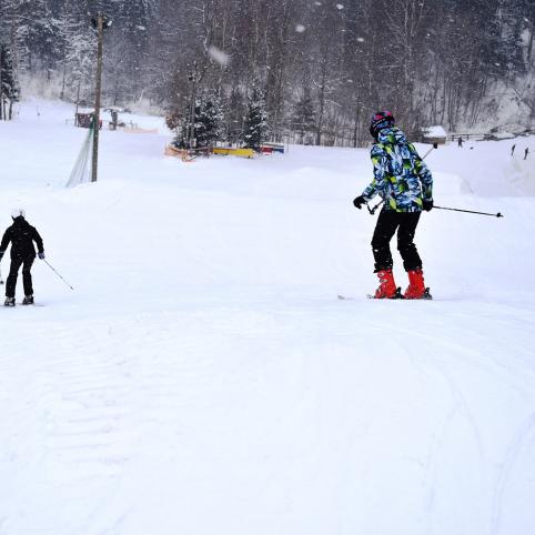 Sli­dinė­ti Kal­niš­kių kai­me pa­ruoš­tos ke­tu­rios tra­sos, tarp jų – ir kal­ne­lis vai­kams, bet ant­ra­dienį jis bu­vo tuš­čias. S. Gra­maus­kas aiš­ki­no, kad taip yra dėl to, jog pirk­ti sli­dinė­ji­mo įran­gos vai­kams neap­si­mo­ka, o ka­dan­gi iš­si­nuo­mo­ti ne­ga­li, tėve­liai čia vaikų ir ne­ve­ža.