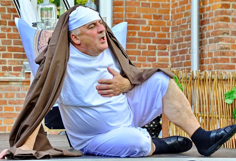 Sce­na iš rie­ta­viš­kių spek­tak­lio „Ta­ria­mas li­go­nis“