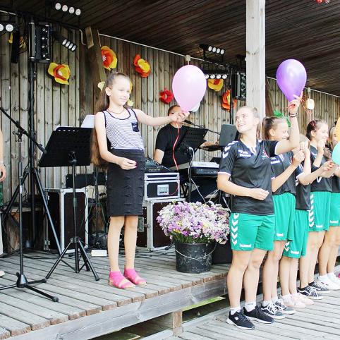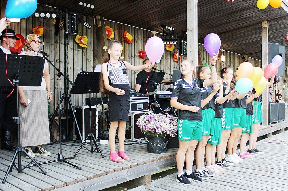 Gra­žią va­sa­ros pa­bai­gos šven­tę pra­dė­jo ma­žie­ji žad­vai­niš­kiai – Ro­ma Kro­me­ly­tė ir Ne­das Ju­dei­kis. Jau­nie­ji ei­liuo­to žo­džio meist­rai pa­dek­la­ma­vo ei­lė­raš­tį apie va­sa­rą. Vė­liau šven­tės vai­rą į sa­vo ran­kas pe­rė­mė jos ve­dė­ja, į prie­kį pa­kvie­tu­si šių me­tų Lie­tu­vos „La­dy­go­lo“ čem­pio­nes – Žad­vai­nų pa­grin­di­nės mo­kyk­los mer­gai­čių fut­bo­lo ko­man­dą su ba­lio­nais. Susp­rog­di­nu­sios juos, moks­lei­vės su­kė­lė aud­rin­gas ova­ci­jas.