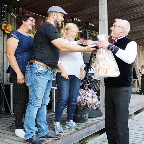 Links­mai nu­si­tei­ku­sius žad­vai­niš­kius pa­svei­ki­no Rie­ta­vo kai­miš­ko­sios se­niū­ni­jos se­niū­nas To­mas Dauk­ša, pa­si­džiau­gęs dau­gy­bę me­tų Žad­vai­nuo­se gy­vuo­jan­čia šven­te, čia gy­ve­nan­čiais žmo­nė­mis, jų ge­bė­ji­mu ne tik triūs­ti, bet ir at­si­pa­lai­duo­ti, su­reng­ti gra­žią šven­tę ir pa­si­links­min­ti.