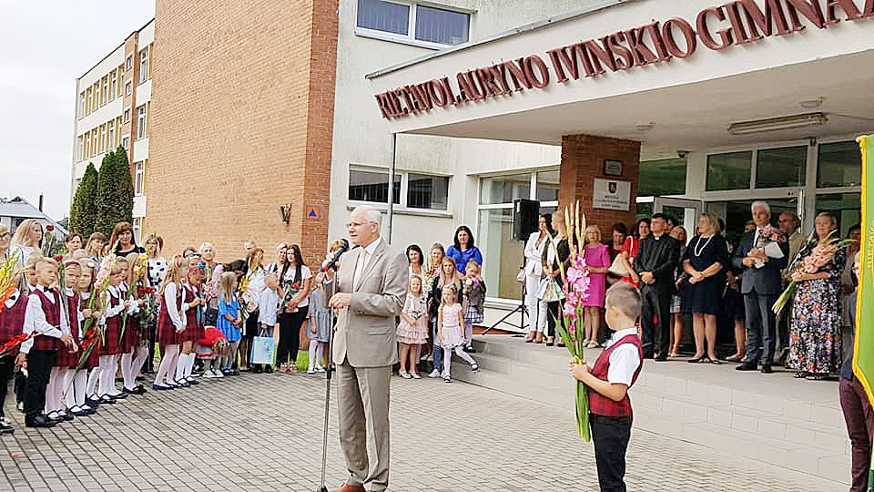 Sėk­min­gų moks­lo me­tų jis lin­kė­jo ne tik bū­riui vai­kų ir jau­ni­mo, bet ir pe­da­go­gams. „Ši­ta mo­kyk­la man – be ga­lo bran­gi. Vi­sa­da, kai gal­vo­ju apie mo­kyk­lą, pri­si­me­nu Rie­ta­vo vi­du­ri­nę, ku­ri da­bar va­di­na­si L. Ivins­kio gim­na­zi­ja, ir ja tik­rai di­džiuo­juo­si. Pir­miau­sia dėl to, kad tu­rė­jau nuo­sta­bius mo­ky­to­jus“, – svei­kin­da­mas gim­na­zi­jos bend­ruo­me­nę kal­bė­jo mi­nist­ras ir dė­ko­jo jai už pa­kvie­ti­mą da­ly­vau­ti šven­tė­je.