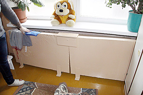 RADIATORIAI: Bazilionų vaikų darželio radiatoriai – betoniniai su išvedžiotais elektros laidais. Tokiais radiatoriais kolūkio laikais šildė fermas, kad nesušaltų paršiukai.