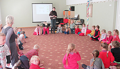 9.00 val. Laima pradeda vesti muzikinius užsiėmimus: „Neturime griežtai nustatytos valandos, tačiau pamokas paprastai pradedame vaikučiams pavalgius pusryčius. Muzikos pamokėlės vyksta iki 11.00 val., kartais užtrunkame ir iki 11.30 val., t. y. pietų meto. Taikomės prie valgymo bei ėjimo į kiemą režimų“, – įprastą darželio-daugiafunkcio centro dienotvarkę apibūdina L. Karpavičiūtė.