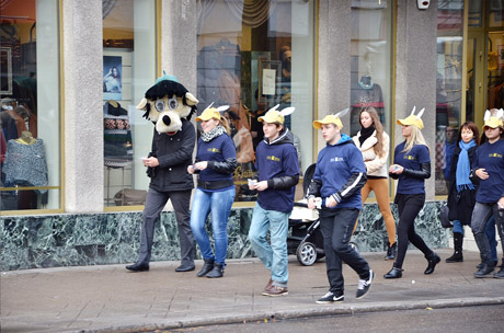 AKCIJA: Teatralizuotoje akcijoje prieš keleivius be bilietų dalyvavo vilkai ir zuikiai.