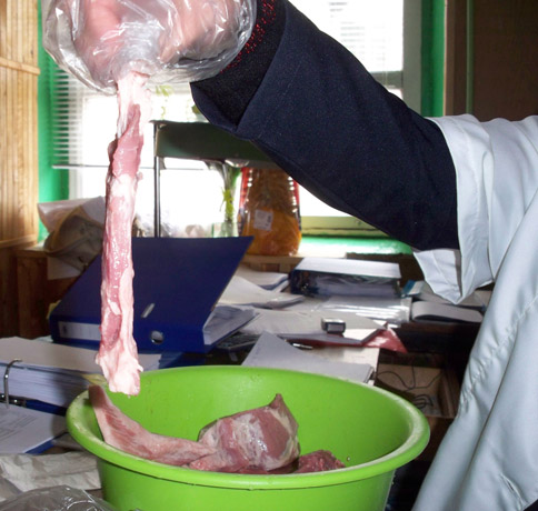 Ant vakuuminės pakuotės buvo užrašyta, jog tai kiaulienos raumens nuopjovos, tačiau, atidarius pakuotę, net ir vizualiai buvo matoma, kad mėsa yra nekokybiška – tarp kelių gabalų raumens matėsi nemažai atraižų su taukais, pakuotėje rastas ir nemažas gabalas lašinių. Ši mėsa buvo malama ir naudojama „Naminių kotletų“ gamybai.