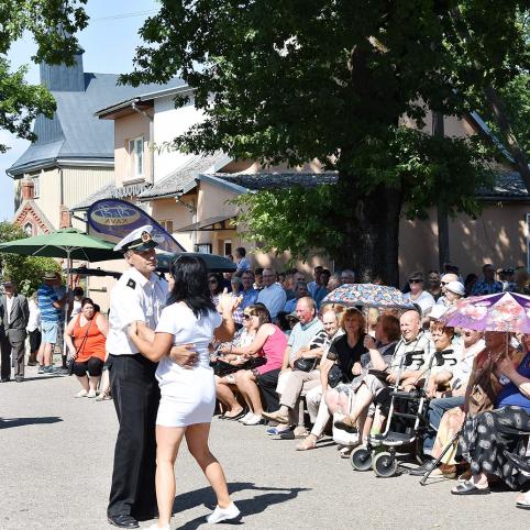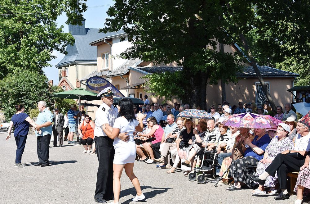 Po šv. Mi­šių kan­tau­tiš­kiai pa­trau­kė prie kul­tū­ros cent­ro. Ten kon­cer­tą tę­sė Ka­ri­nių jū­rų pa­jė­gų or­kest­ras, tran­kiais mar­šais ir ly­riš­kais val­sais pub­li­ką iš­ju­di­nęs net iki šo­kių.