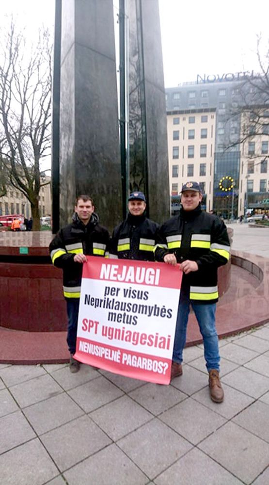 Prie pro­tes­to ak­ci­jos pri­si­jun­gęs vie­nas Ku­lių ug­nia­ge­sių ko­man­dos na­rys „Že­mai­čiui“ pa­sa­ko­jo, kad la­biau­siai jam pik­ta dėl to, jog, ri­zi­kuo­da­mas sa­vo gy­vy­be, gau­na 450 eu­rų al­gą. Su­ma ne­daug ma­žes­nė už tą, ku­rios kas mė­ne­sį su­lau­kia vals­ty­bės šel­pia­mi be­dar­biai.