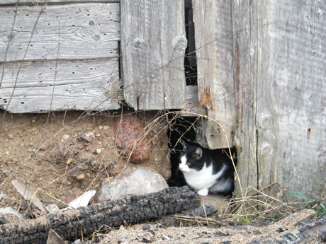 GYVENTOJA: Sudegusius namus dabar saugo vienintelė jų gyventoja – Vasilijaus katytė.