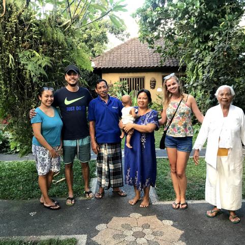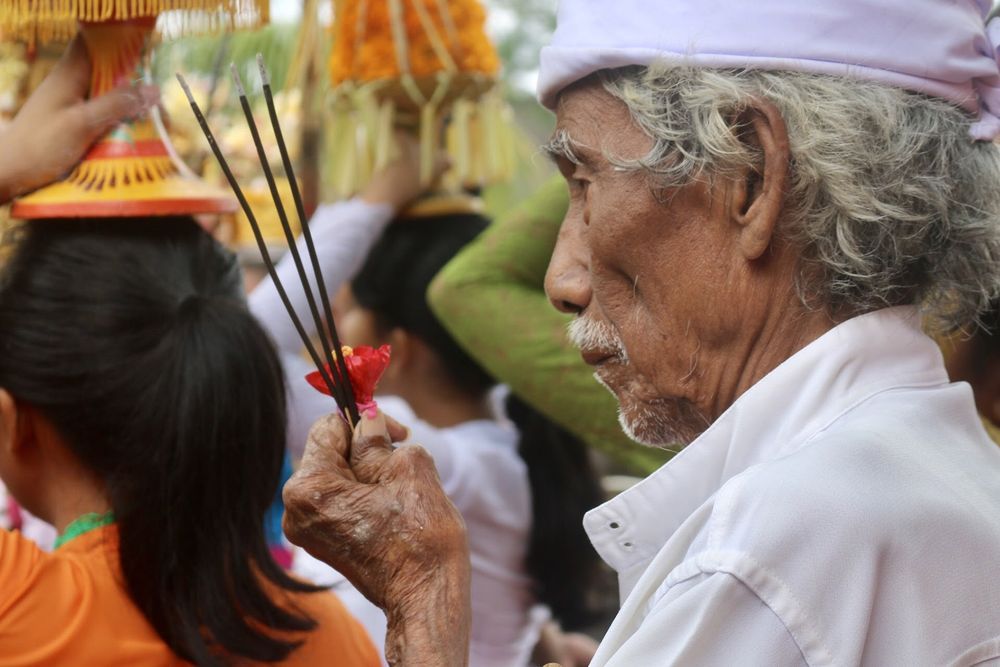 Šiai ceremonijai pasibaigus visi lėtai grįžta į kiemą. Pasklinda gardaus maisto kvapas. Esame vaišinami aštriais, bet nuostabaus skonio patiekalais ir šnekučiuojamės su be galo draugiškais vietiniais žmonėmis. Balio gyventojai, jei nedirba su turistais, beveik nekalba angliškai, bet, esant norui, visada įmanoma atrasti tam tikrą būdą (ar vertėją) susikalbėti.