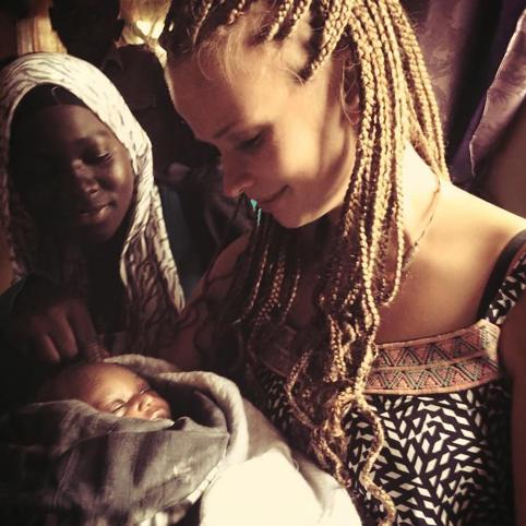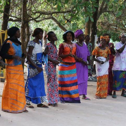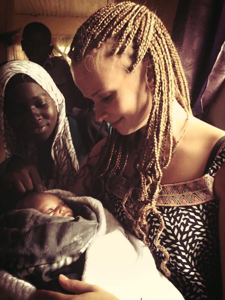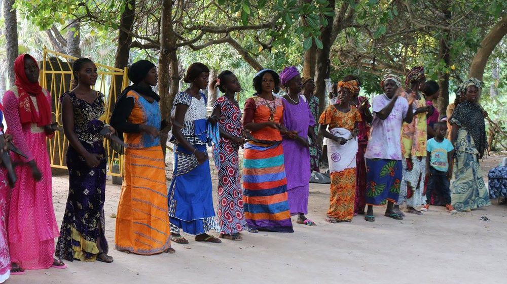 Mūsų pokalbį nutraukia staiga įsibraunantys džambe būgnų garsai – neatsiejama Gambijos kultūros dalis. Kol savaitės amžiaus naujagimis ilsisi namie tetų rankose, į lauką išeina mama. Pasipuošusi įspūdinga, spalvinga suknia ir ryškiu makiažu, ji eina lėtai, pasisveikindama su kiekvienu svečiu. Dažnas jai įbruka pinigų banknotą, o ją sekančios moterys dainuoja per garsiakalbį, kalbina, juokina žmones ir už tai taipogi gauna atlygį.
