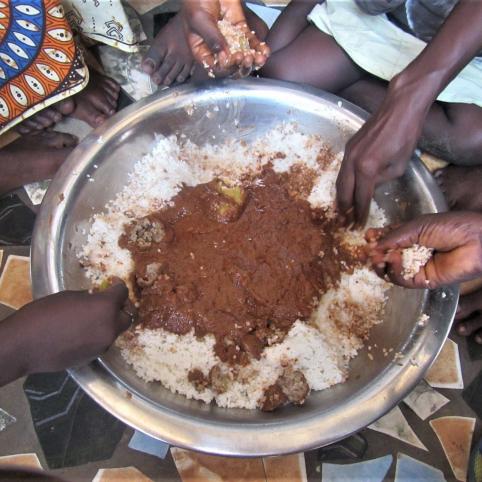 Ši mažytė šalis turi nuostabią Atlanto vandenyno pakrantę, todėl žuvis – kasdienis maistas prie vandenyno įsikūrusiose bendruomenėse. Šaukšto nėra, nebus ir šakutės. Draugė nusišypso, pasiekia vandens ąsotį. Nusiplauname rankas ir dešine ranka kabiname ryžius su padažu, suspaudžiame saujoje ir dedame jų rutuliukus į burną.