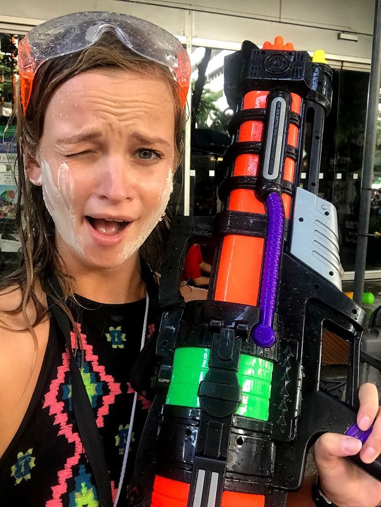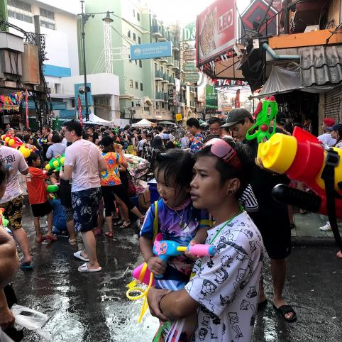 O šie gink­lai – tai van­dens šau­tu­vai. Jau pir­mo­sio­mis va­lan­do­mis Ban­ko­ke tam­pa aiš­ku, kodėl tai­lan­die­čių Nau­jieji – Songk­ran – neo­fi­cia­liai yra va­di­na­mi Tai­lan­do van­dens fes­ti­va­liu.