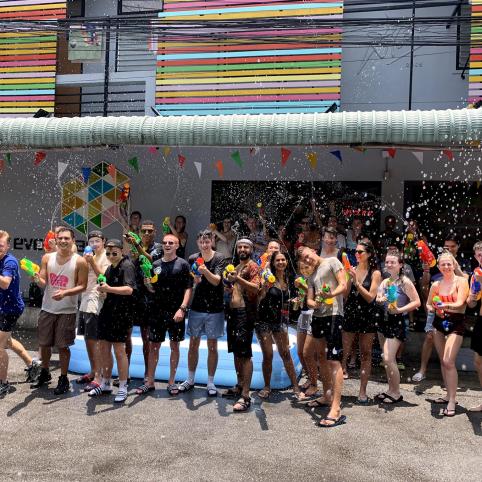 Songk­ran taip pat yra šven­čia­ma tris die­nas ir jos tra­di­ci­jos gan pa­na­šios į Kam­bod­žos. Šventės tiks­las – ap­si­va­ly­ti ir pa­si­reng­ti nau­jai pra­džiai. Va­lo­mi na­mai, bu­dos skulptū­ros ne­ša­mos į šven­tyk­las nu­plau­ti su gėlėmis kve­pin­tu van­de­niu, o no­rint iš­reikš­ti pa­garbą se­no­liams – plau­na­mos jų ran­kos. Nors tik­ro­ji Song­ra­no tra­di­ci­ja – tik tru­putį ap­šlaks­ty­ti vie­nas kitą, šiais lai­kais tai yra išaugę į did­žiulį van­dens karą.