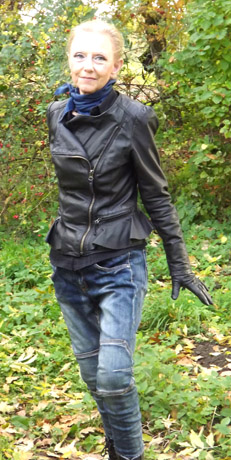 ĮVAIZDIS: Smulkutė beveik efemeriška figūrėlė, kuriai tikrumo suteikia juoda odinė striukė, džinsai ir tamsaus mėlio aplink kaklą apsukta skarelė – tokia mus pasitinka rašytoja Jolita Skablauskaitė.