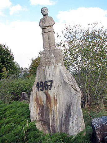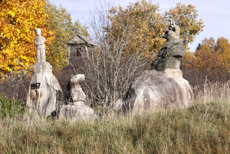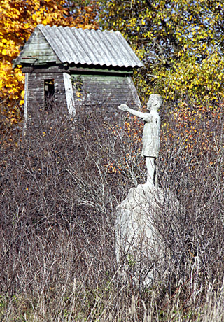 LIKUČIAI: Vienas iš išlikusių betoninių berniukų. Fone – buvęs velnių malūnas.