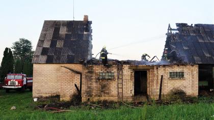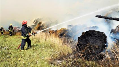 Daržinėje siautėjusi ugnis naikino šieno ritinius
