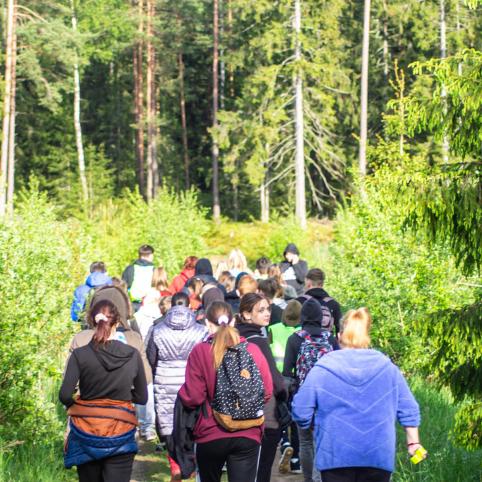Po ofi­cia­lio­sios ren­gi­nio da­lies vi­si no­rin­tie­ji pa­kvies­ti į žygį pėsčio­mis nuo Alsėd­žių iki Die­vo Krėslo miš­ko par­ti­zanų bun­ke­rio.